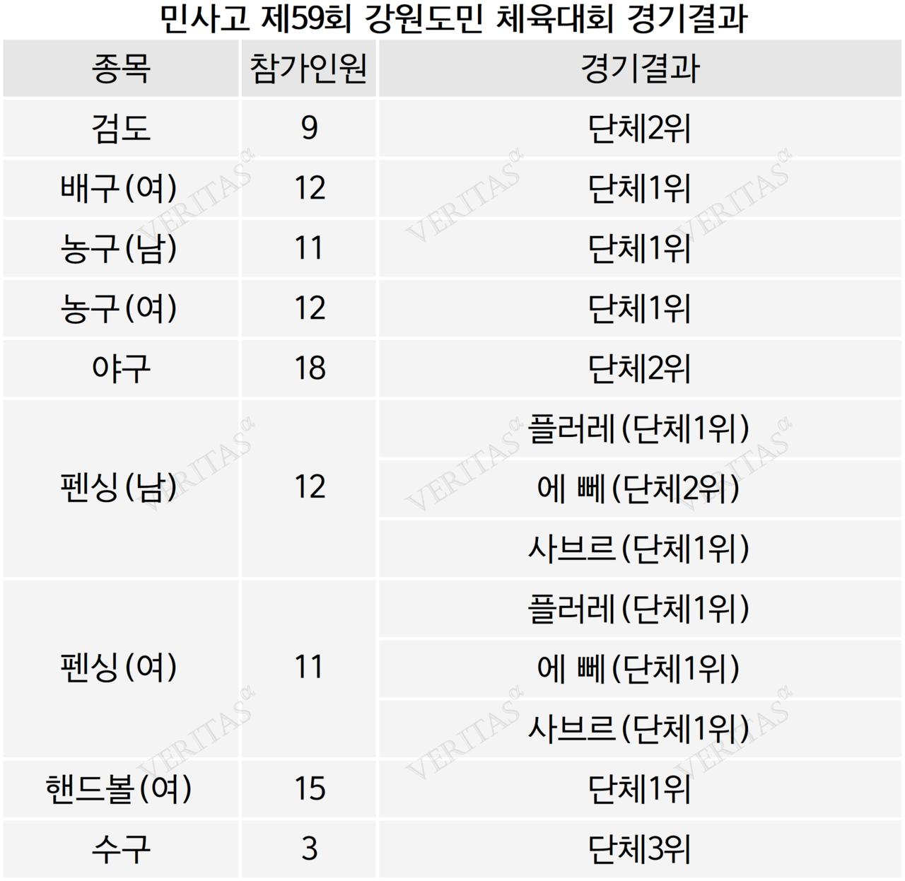 [베리타스알파=조혜연 기자] 국내 영재교육 대표주자인 민사고가 제59회 강원도민 체육대회에 참가해 우수한 성적을 거둬 눈길을 끈다. 학업적 역량뿐 아니라 체육에서도 뛰어난 기량을 발휘했다는 점에서 ‘전인적 인재’의 면모를 드러냈기 때문이다. 민사고는 이번 대회에 총 10개 종목 105명의 학생 선수가 출전했고 금메달 7개, 은메달 2개, 동메달 1개를 획득하는 쾌거를 이뤘다.