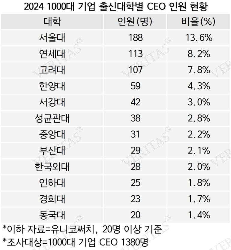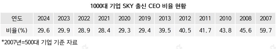 <1000대 기업 CEO 10명 중 3명 ‘SKY 출신’>