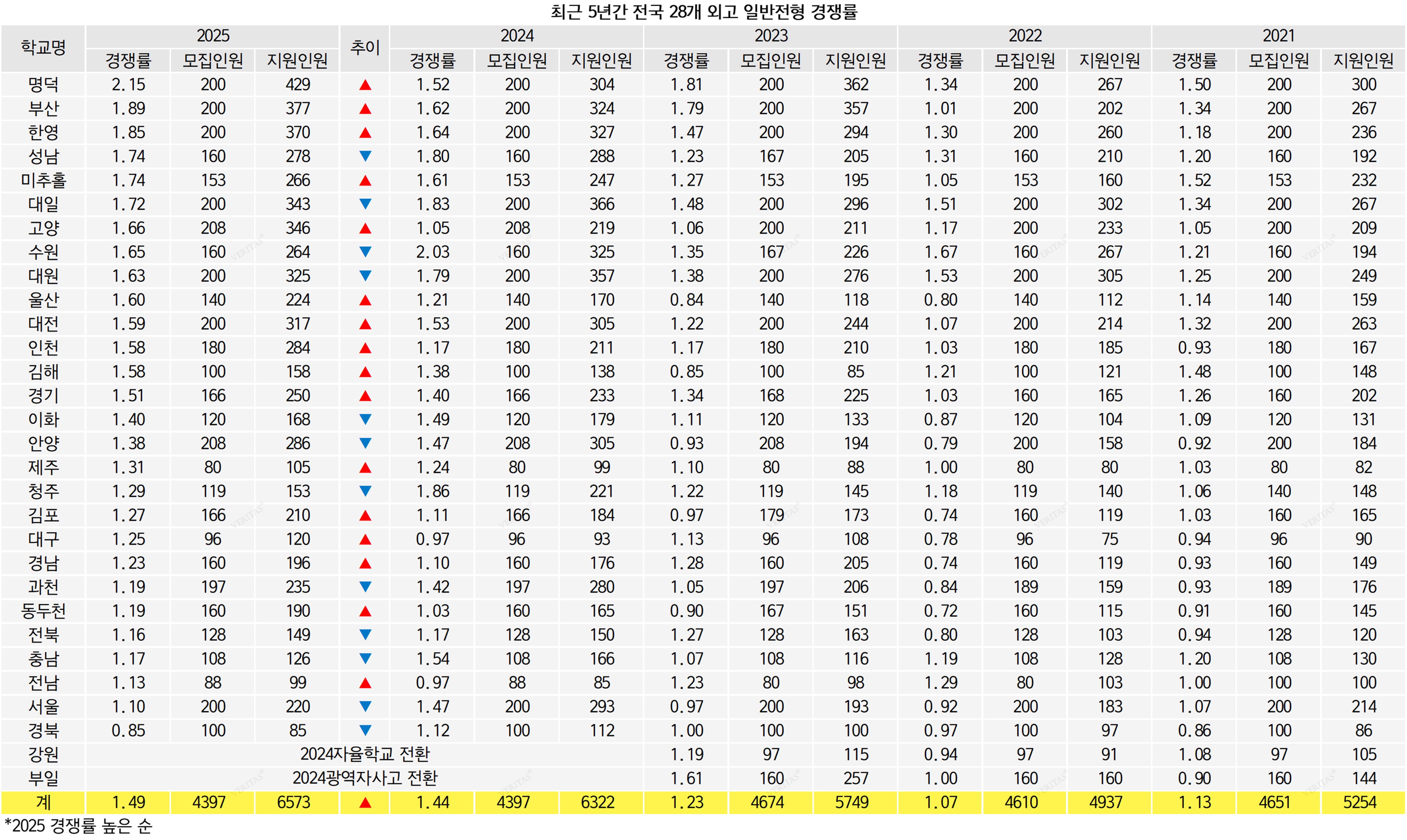 <2025외고 경쟁률 1.39대1.. ‘상승가도’>