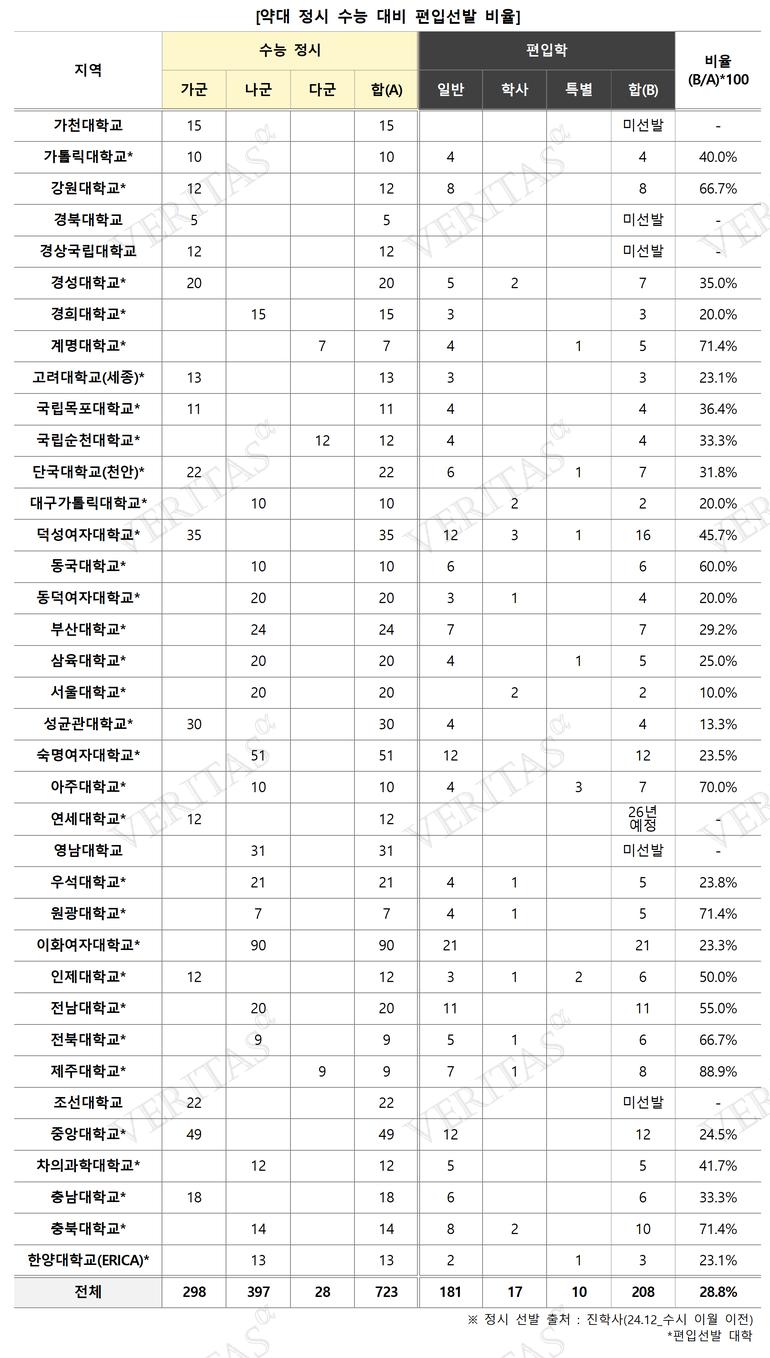 2025약대편입규모 208명..정시(723명)의 28.8%