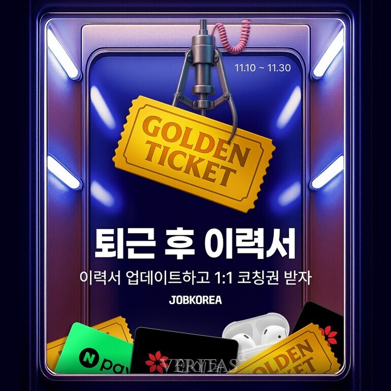 잡코리아는 신청자 중 60명을 선정해 오프라인 강연, 네트워킹 행사에 참여할 수 있는 '골든 코칭권'을 제공한다. 행사는 토스뱅크, 롯데카드, 아모레퍼시픽 등 현직자 선배의 취업 특강이 열리고 이후 참가자별 이력서 첨삭 및 1:1 코칭 등 다양한 프로그램이 진행된다. 잡코리아 본사 라운지에서 12월 16일 마케팅 직군을 시작으로 17일 PM/PO, 18일 개발 순으로 3일간 열릴 예정이다.