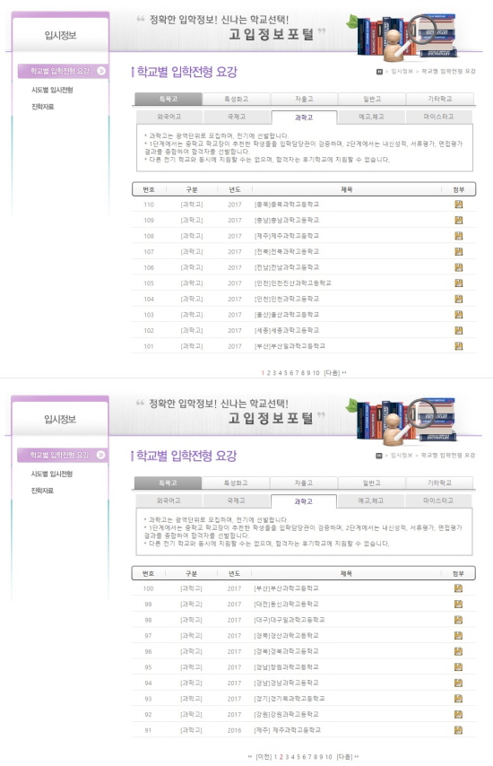 고입정보포털은 이미 지난해 파행운영을 선보인 바 있다. 지난해 영재학교와 과고, 특목고, 자사고 등 전기고 입시가 대부분 마무리된 시점에 고입정보포털은 요강 누락/중복탑재/오등록 등으로 빈축을 샀다.