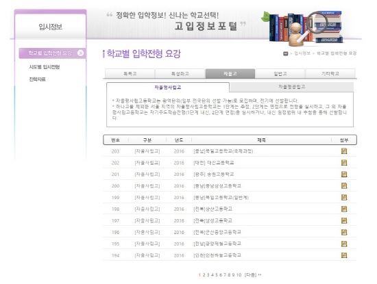 현재 전국단위 자사고 10개교 중 하나고와 외대부고를 제외한 김천고 광양제철고 민사고 북일고 상산고 인천하늘고 포항제철고 현대청운고 등 8개교가 요강을 발표했지만 고입정보포털에는 단 1개교의 요강도 탑재되지 않았다. 이미 수요자들이 고교 홈페이지를 방문 요강을 확인한 이후에야 요강을 탑재하는 행태가 여전히 되풀이되고 있는 셈이다.