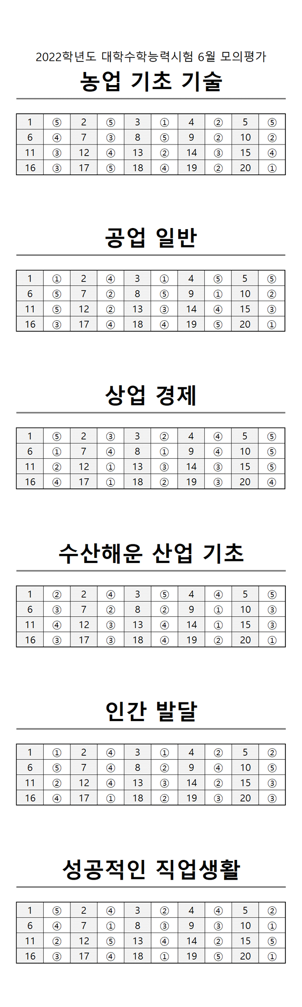 2022 6월학평 정답 고3 직업