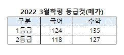 2등급컷 표준점수는 국어118점 수학127점으로 봤다.