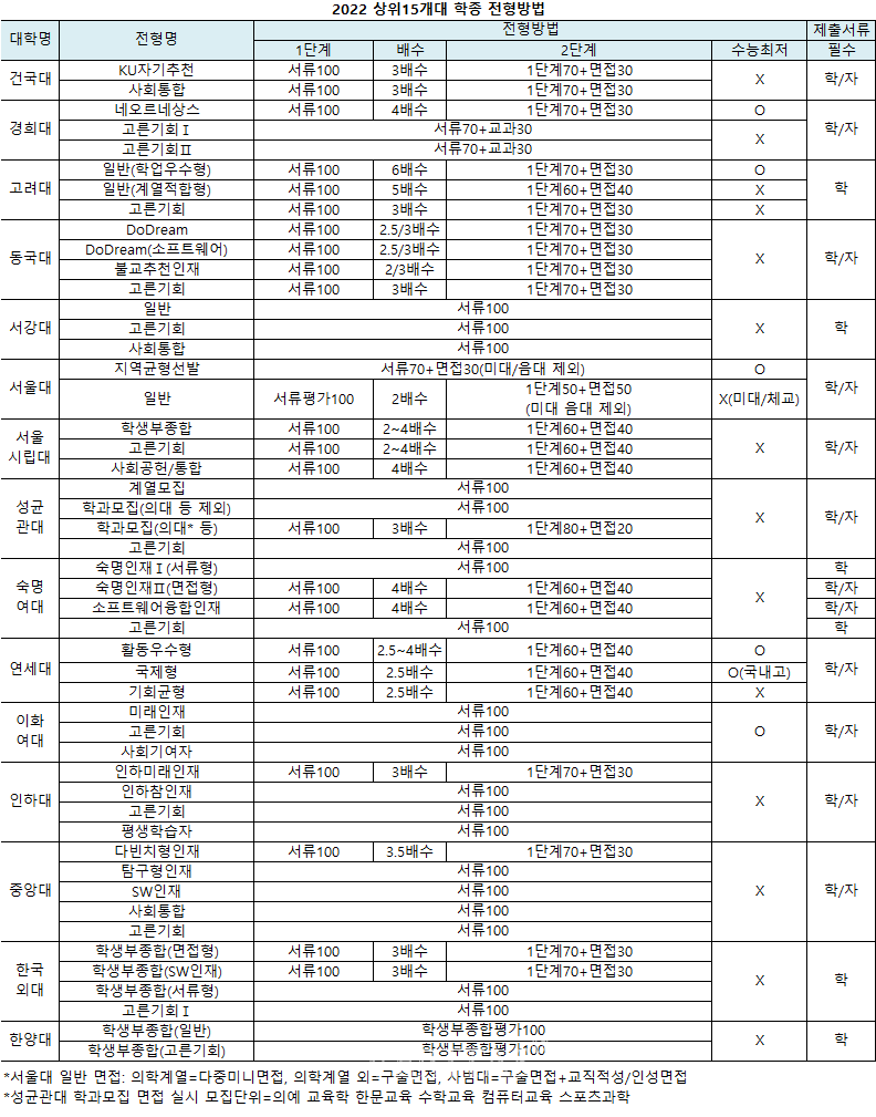 제출서류 간소화 흐름도 이어진다. 2022대입개편에 따라 추천서는 전면 폐지된다. 고려대 서강대 외대는 자소서 제출을 2022학년부터 폐지한다.