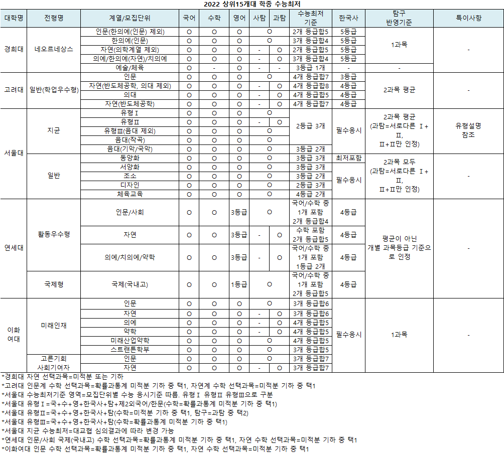 경희대 네오르네상스, 연세대 활동우수형 ‘수능최저 신설’