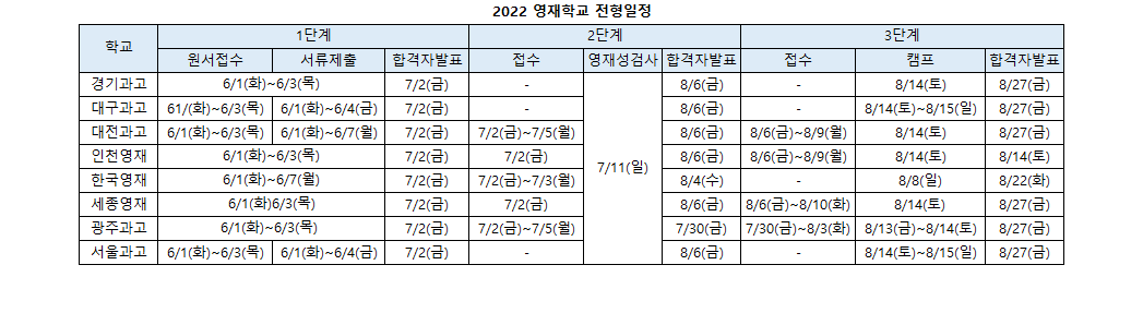 <영재학교 8개교 2022전형일정.. '6월1일 동시개막'>