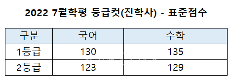 2등급컷은 국어 123점, 수학 129점으로 봤다. 원점수 등급컷은 공개하지 않았다.