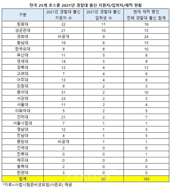 <2021년 로스쿨 입학자, 경찰대학 출신 80명.. 재적 163명>