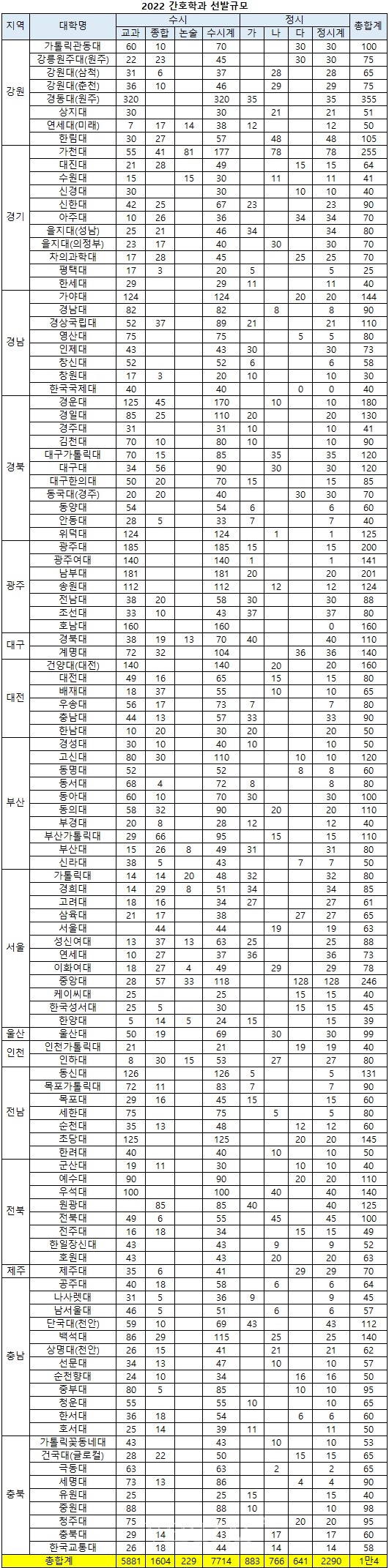 <2022간호학과 115개교 1만4명.. 수시7714명 정시2290명>