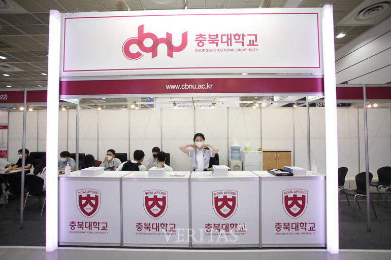 [베리타스알파=신현지 기자] 21일 충북대 부스에서 학생들이 입시상담을 받고 있다. 2023수시박람회는 20일부터 23일까지 나흘간 서울 삼성동 코엑스 1층 A홀에서 진행된다.