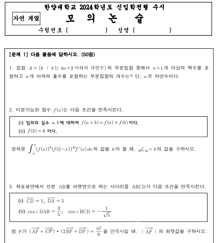 <2024모의논술.. 상경/인문/자연 ‘기출문제 출제의도 예시답안 공개’>