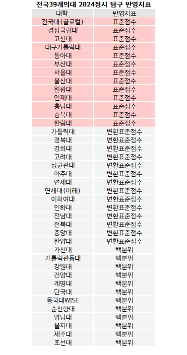 서울대 등 의대 13개교 과탐 표점 ‘그대로’.. 일부 가산점까지