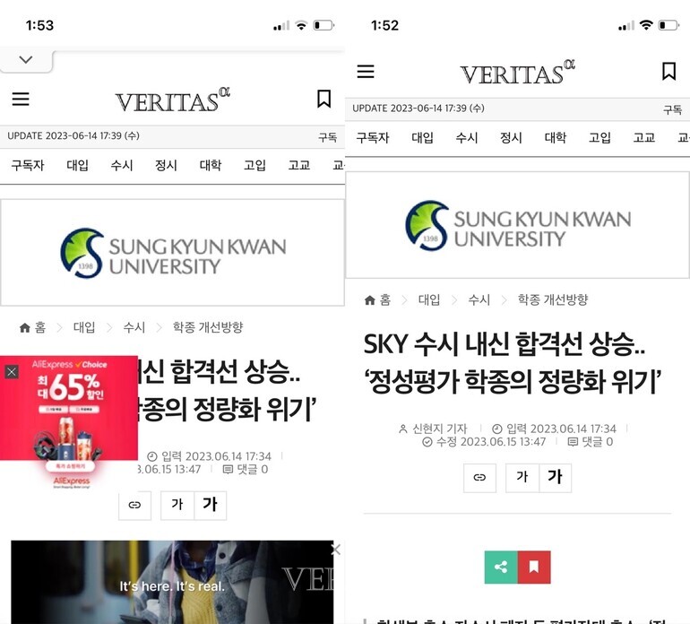 베리타스알파 신문 정기 구독 신청시 무료 증정