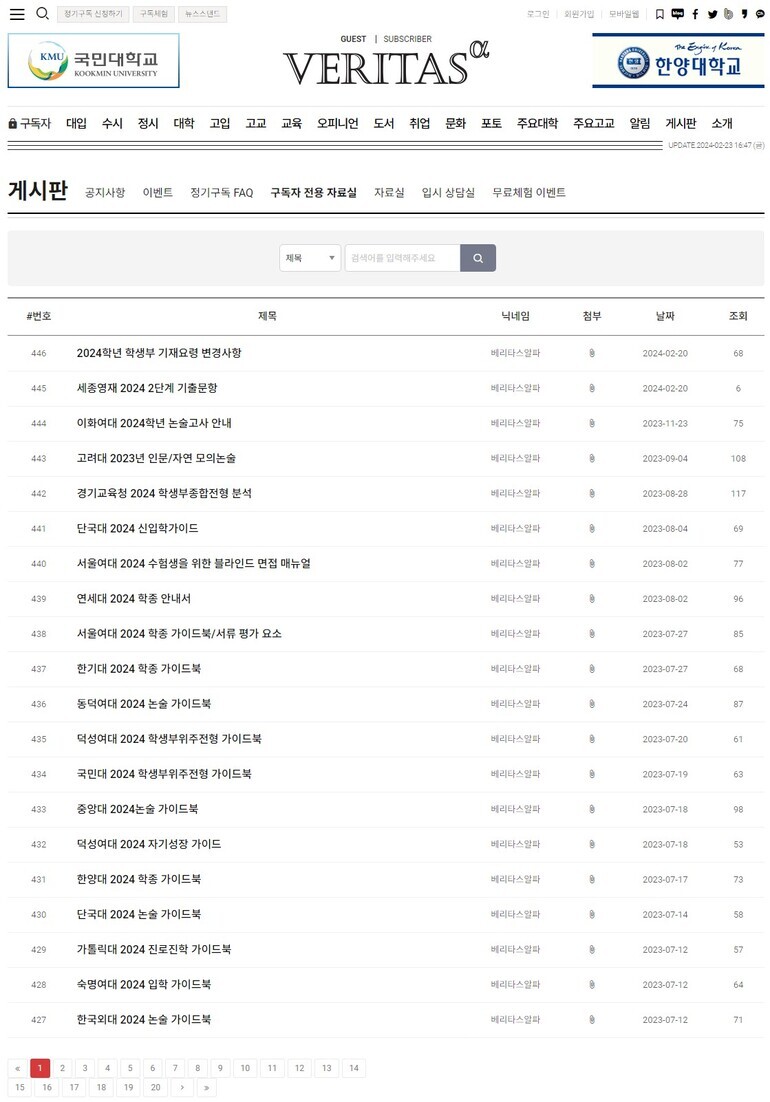 또한, 일부 고급 입시정보와 '대학별고사(논구술/필독서따라잡기)' 콘텐츠는