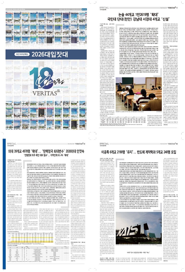 이 같은 배경과 함께 상위대학 중심의 2026 대입 전형과 이공계특성화대학 의치한약수 등 전공별 전형, 알리미/세계랭킹 중심 대입잣대 등 파트로 구성해 학교와 학과 선택에 도움이 되는 필수정보 수록, 수험생과 학부모, 고교 진학담당 교사들이 한 해의 대입 지형을 가늠하고 학교/전형/전공별 전략을 대비할 수 있도록 구성했습니다.