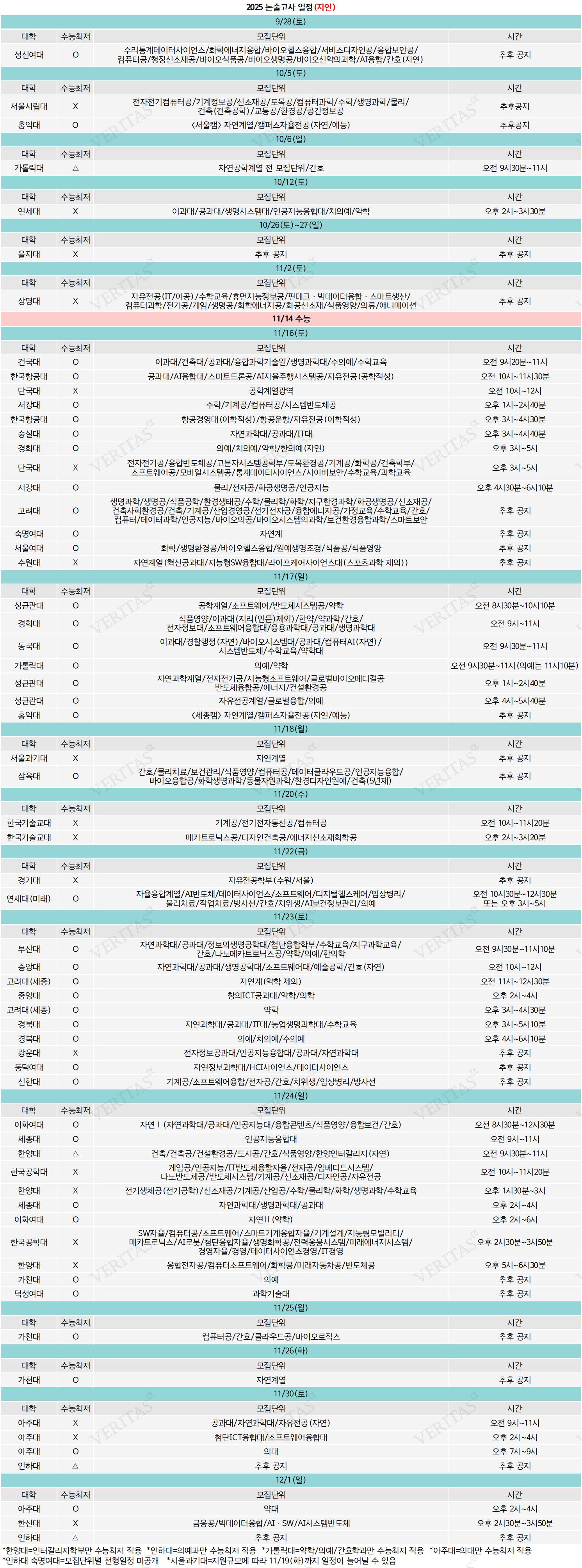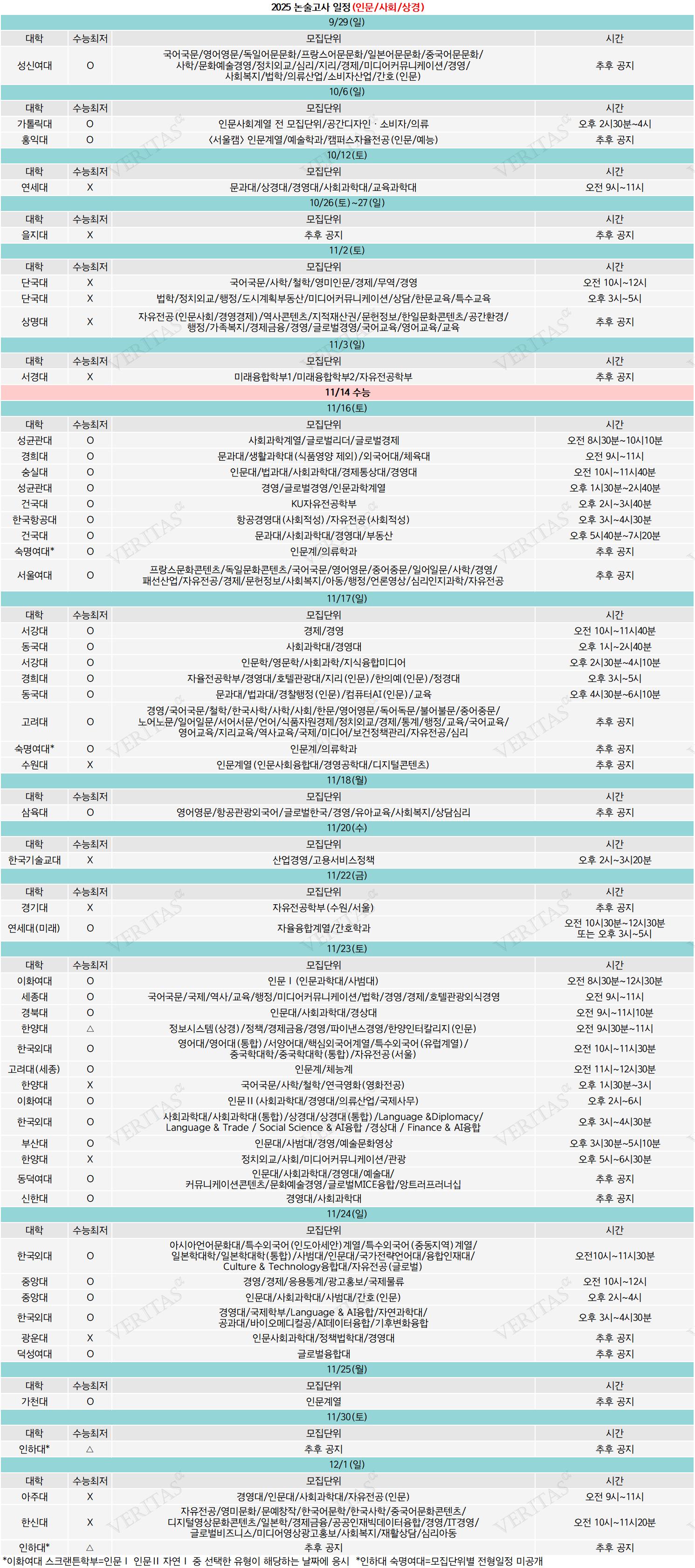 - 인문/사회/상경 11월16일부터 12월1일까지.. 11월23일 ‘9개교’