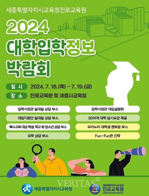 [베리타스알파=김하연 기자] 세종교육청이 18일, 19일 이틀간 시교육청과 진로교육원에서 2024년 대입정보박람회를 진행한다. 학생, 학부모, 교사에게 실질적인 대학 입학 정보를 제공하기 위해 마련됐다.