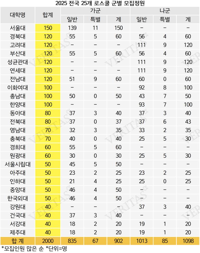 <2025로스쿨 2000명.. 가군 902명, 나군 1098명>