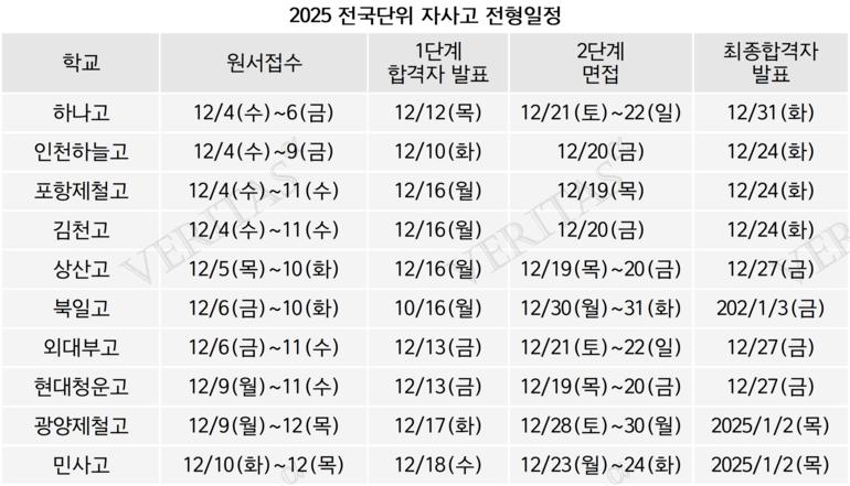<원서접수 일정.. 12월4일 하나고 필두 개막>