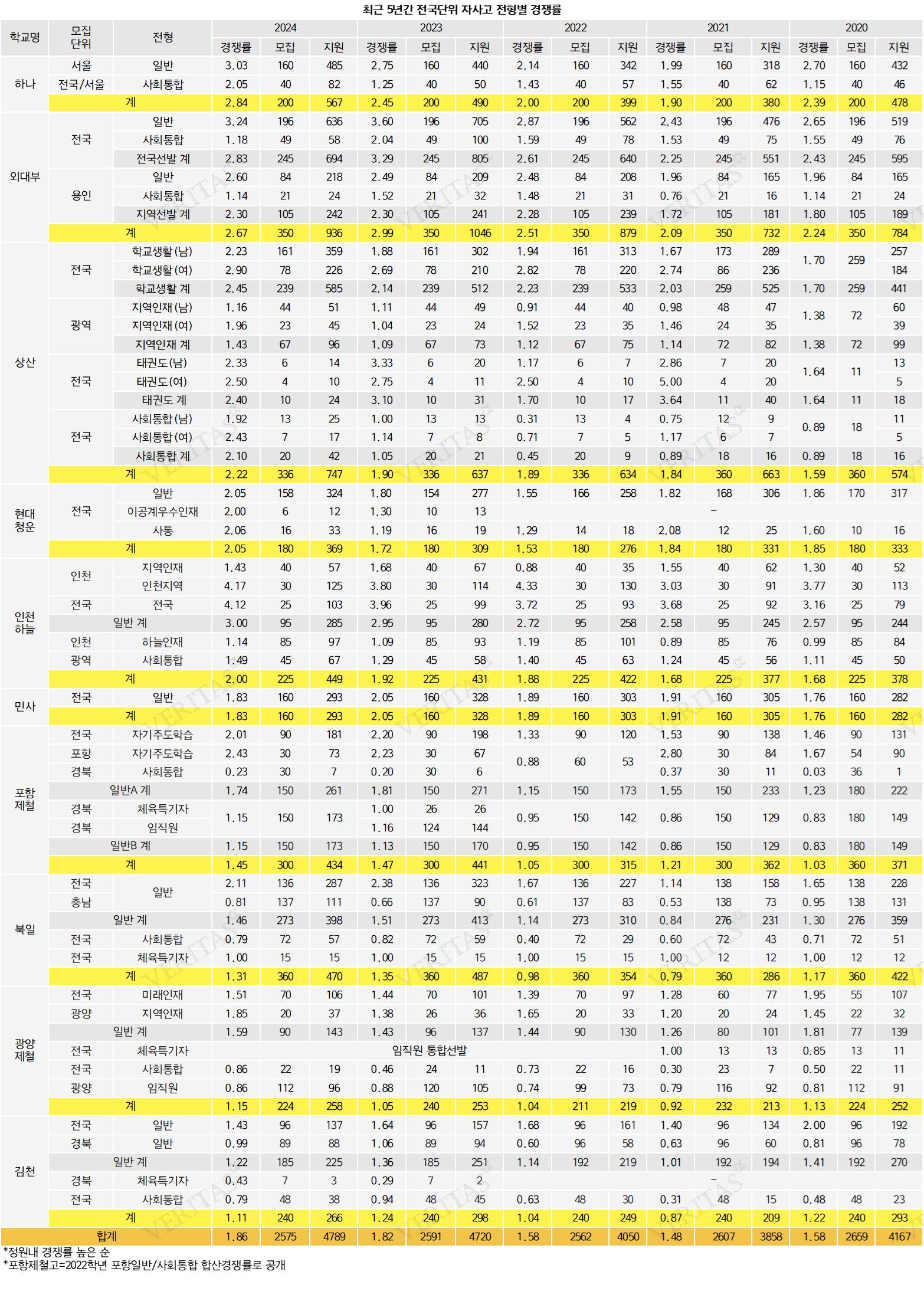 <지난해 10개교 경쟁률 1.86대1 ‘6년래 최고’.. 하나 외대부 상산 현청 하늘 톱5>
