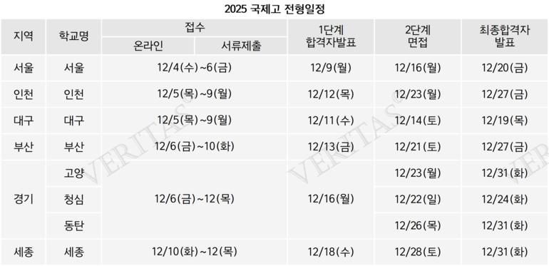 올해 국제고 원서 접수는 12월4일 서울을 필두로 시작한다. 서울은 4일부터 6일까지 원서접수를 실시한다. 이후 인천과 대구가 5일부터 9일까지, 부산이 6일부터 10일까지, 경기의 고양 동탄 청심이 6일부터 12일까지, 세종이 10일부터 12일까지 접수한다.