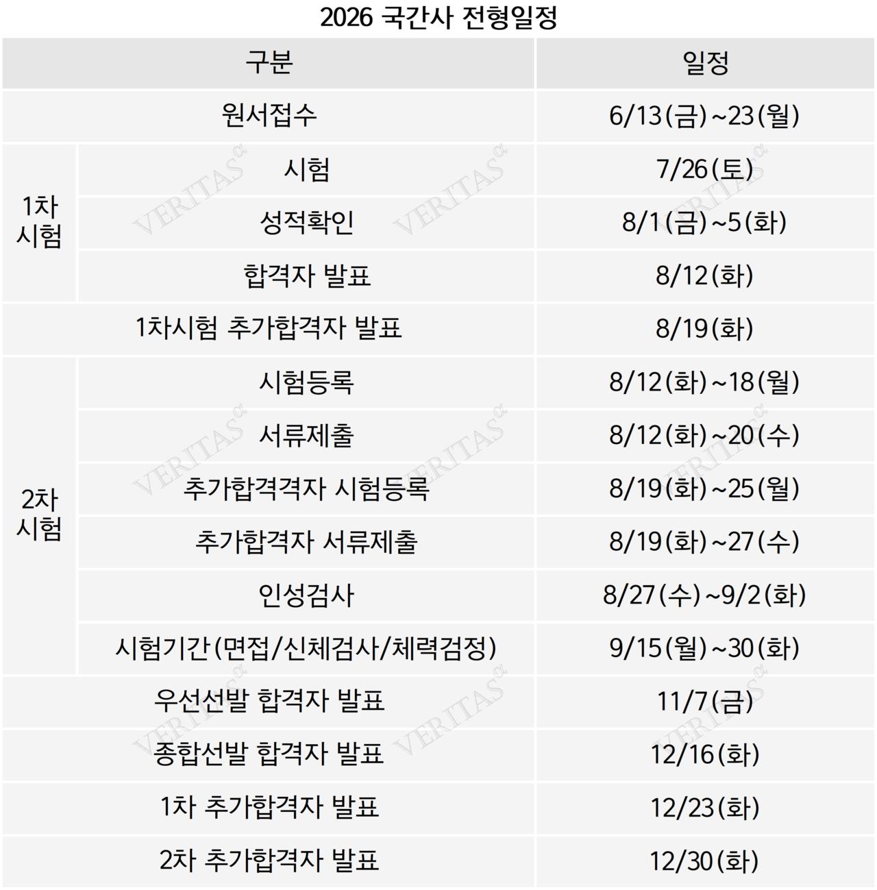 [베리타스알파=조혜연 기자] 2026학년 4개 사관학교(육군 해군 공군 국군간호)의 1차시험 일정이 7월26일로 확정됐다. 국군간호사관학교(이하 국간사)가 지난달 31일 발표한 제70기 생도선발 기본계획에 따르면 1차시험은 기존과 같이 사관학교와 공동시험으로 치러지고, 수능과 유사한 형식으로 국어 영어 수학이 출제된다. 경찰대학의 1차시험 일정은 아직 확정되지 않았지만 다수 입시기관에 확인한 바에 따르면 올해는 경찰대학 역시 사관학교와 같은 날인 7월26일에 치러질 가능성도 흘러나오고 있다. 2025학년 7년 만에 시험일정이 분리됐지만, 사관학교-경찰대학 간 합격생의 이탈이 적지 않았던 데다 중복지원이 가능해지면서 급격히 증가한 응시자로 시험 운영에도 어려움을 겪었던 것으로 보였다고 분석된다.