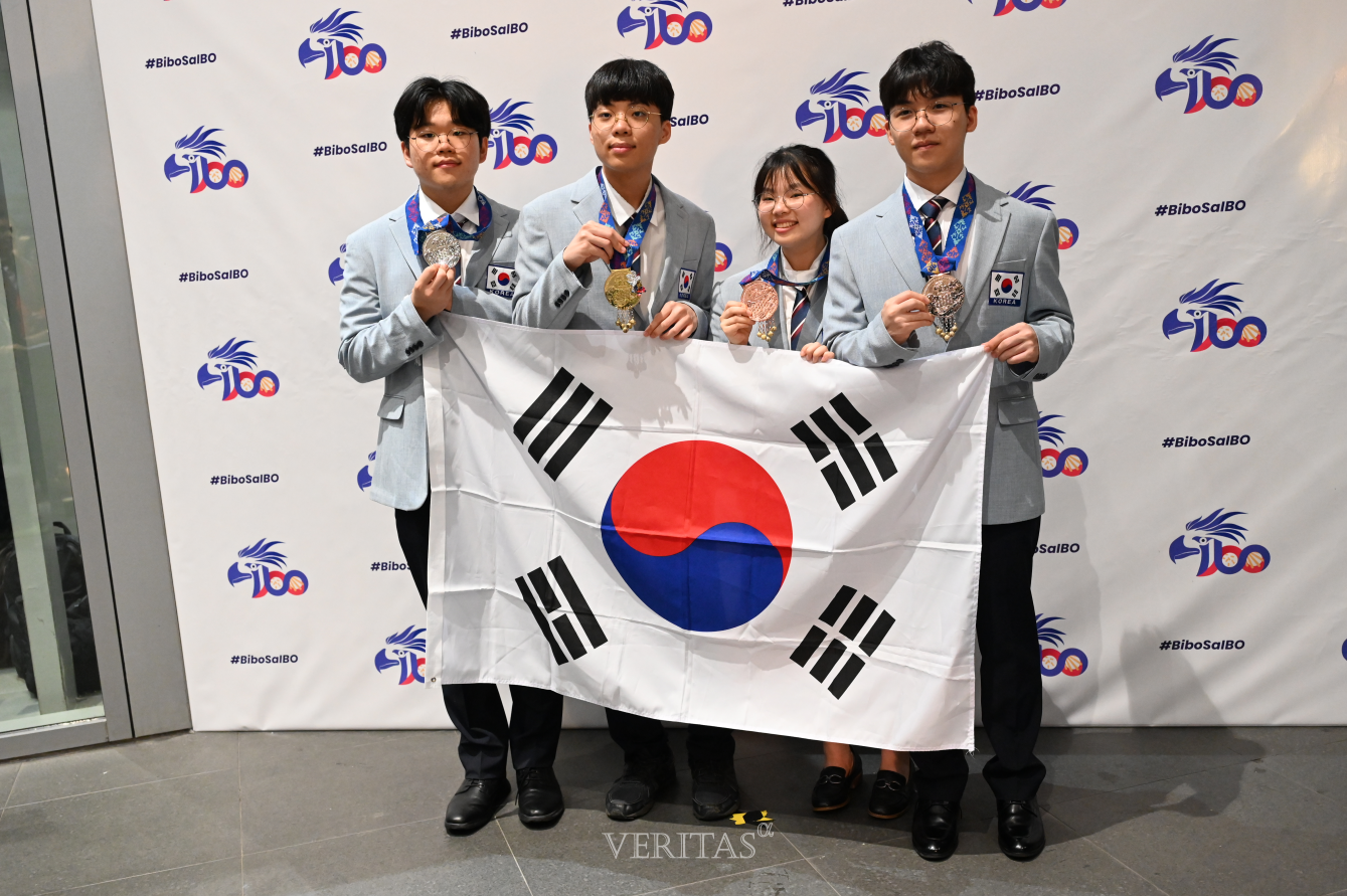[베리타스알파=이상현 기자] 2025 제36회 국제생물올림피아드(IBO)에서 한국대표단 4명 전원이 메달을 획득했다. 안영민(대구과고3) 학생이 금메달, 김현웅(서울과고3) 박성준(서울과고3) 학생이 은메달, 윤정(대구과고3) 학생이 동메달을 수상했다. 학교별로 보면 대구과고(금1동1)와 서울과고(은2) 각 2명이다.