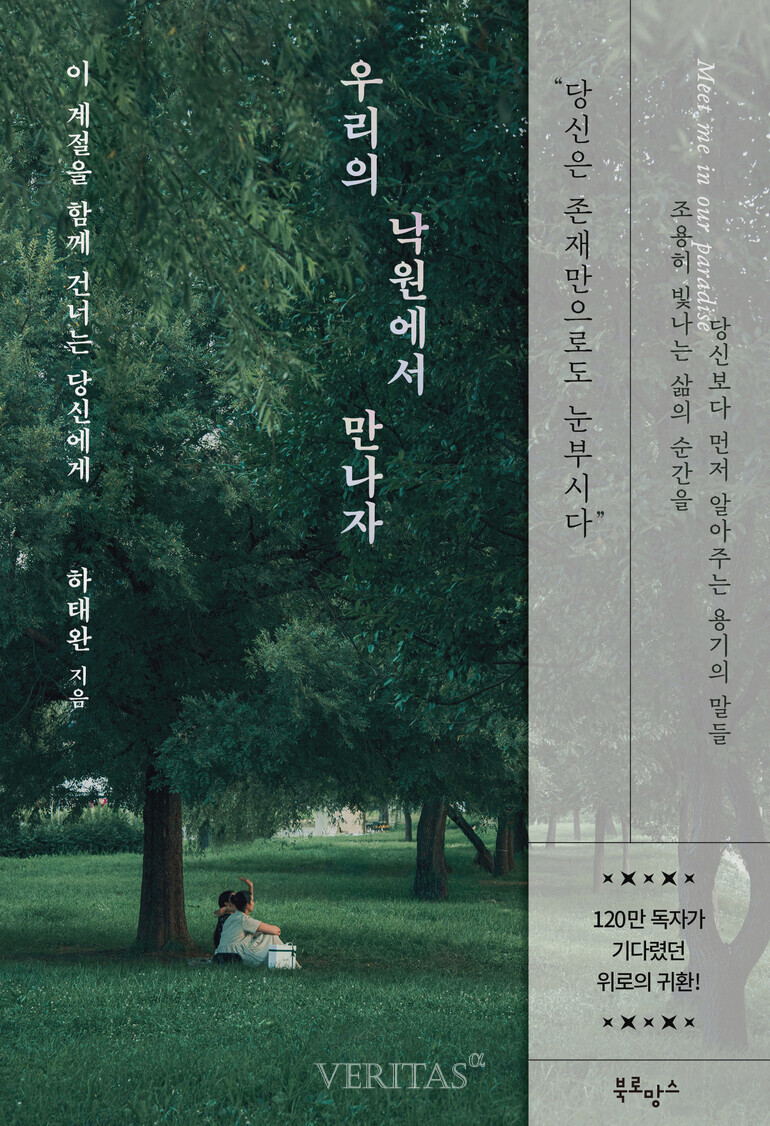 [베리타스알파=김하연 기자] 살면서 편히 쉴 수 있는 마음의 낙원을 꿈꾸는 것은 누구나 마찬가지일 것이다. ‘우리의 낙원에서 만나자’는 그런 바람을 품은 이들에게 전하는 다정한 지도 같은 책이다. 작가는 복잡한 마음을 정확히 설명해 줄 문장을 길어 올리고, 쉽게 흘려보낼 감정에도 이름을 붙이며 우리가 걸어온 날들과 앞으로 나아갈 길을 선명하게 비춰준다.