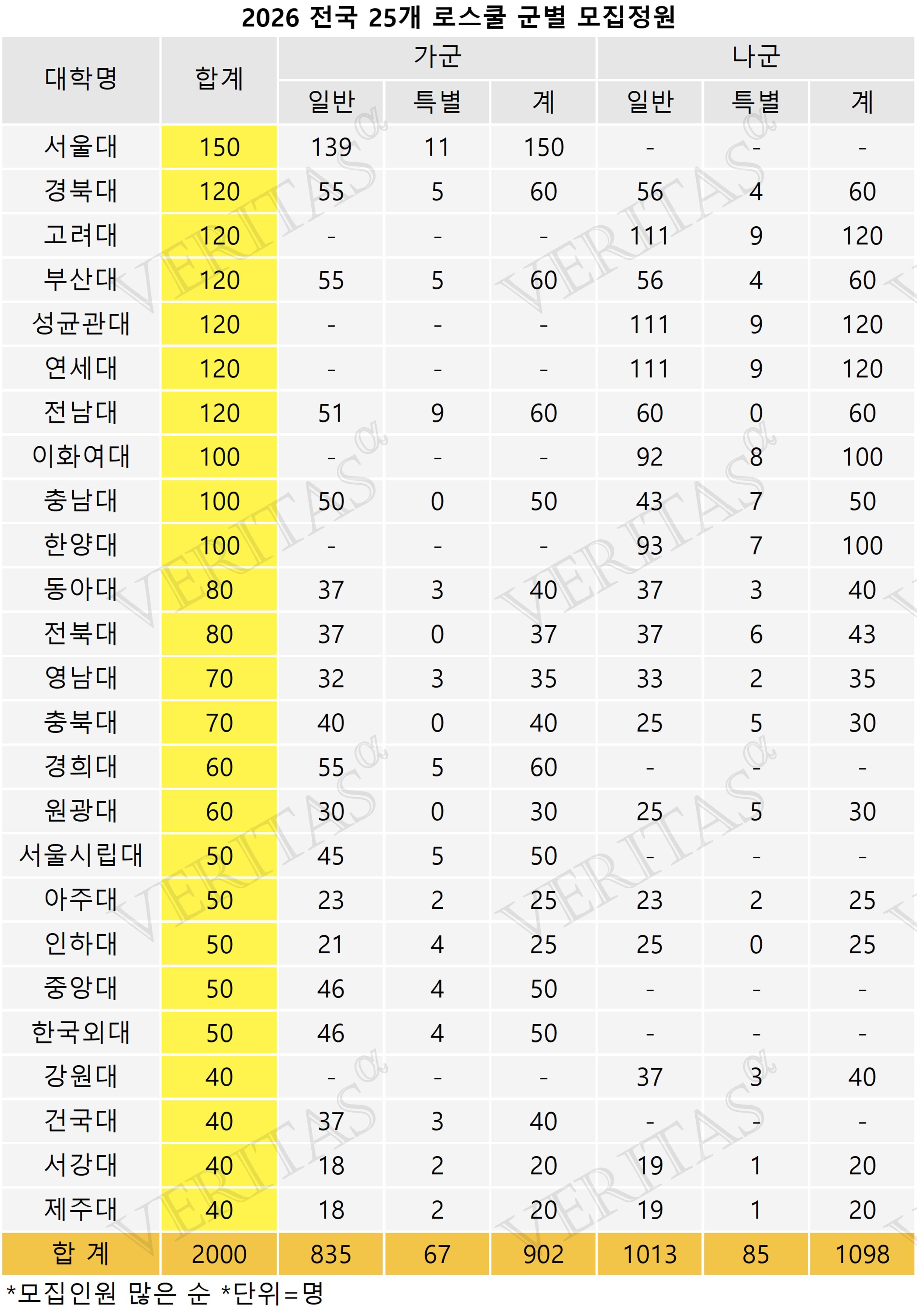 <2026로스쿨 2000명.. 가군 902명, 나군 1098명>