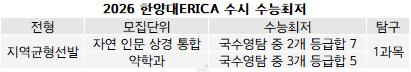 [베리타스알파=신현지 기자] 한양대ERICA는 올해 첨단 교육 시스템과 연구 인프라를 바탕으로 한 학과 신설/개편이 눈에 띈다. 먼저 차세대반도체융합공학부를 신설했다. 차세대반도체융합공학부는 학부와 전공(신소재/반도체공학전공, 반도체/디스플레이공학전공)별로 신입생을 각각 모집한다. 학부 신입생은 2학년 진급 시 1개의 전공을 선택하며, 인원의 제한이 없다. 정원은 학부 48명, 신소재/반도체공학전공 52명, 반도체/디스플레이공학전공 30명이며 올해 수시에서는 각각 29명 32명 18명으로 총 79명을 모집한다.