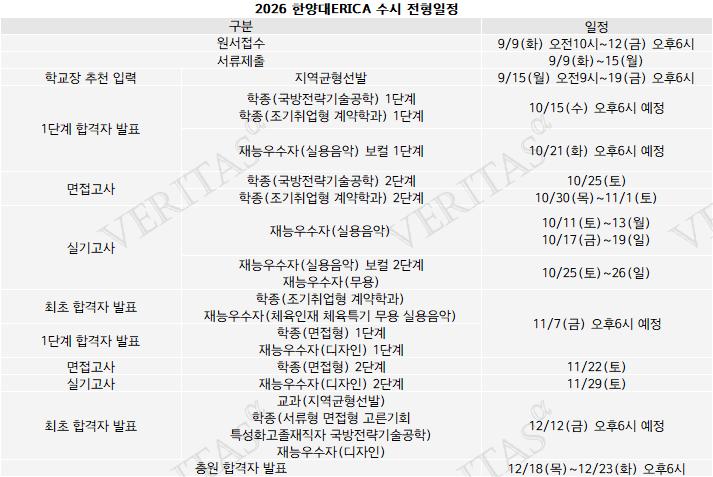 수시 원서접수 기간은 9월9일 오전10시부터 12일 오후6시까지다. 서류는 9월15일까지 제출하면 된다. 학교장 추천 입력은 9월15일 오전9시부터 19일 오후6시까지다.